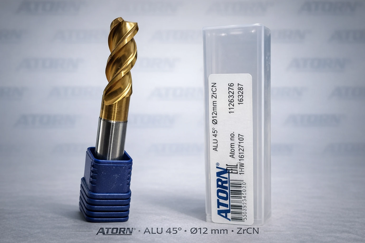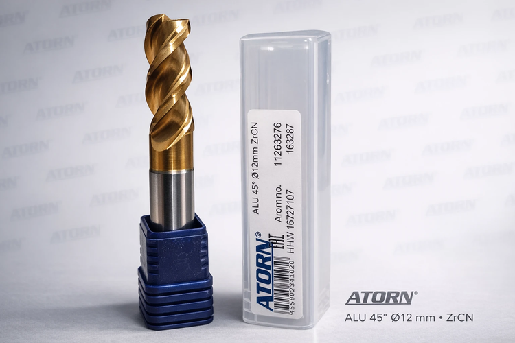 فرز انگشتی آلومینیوم ATORN قطر 12 میلیمتر با زاویه مارپیچ 45 درجه و پوشش ZrCN، یک ابزار برش حرفهای برای ماشینکاری دقیق آلومینیوم و آلیاژهای آن در دستگاههای CNC است.