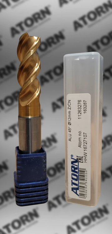 فرز انگشتی آلومینیوم ATORN قطر ۱۲ میلیمتر، زاویه ۴۵ درجه، پوشش ZrCN