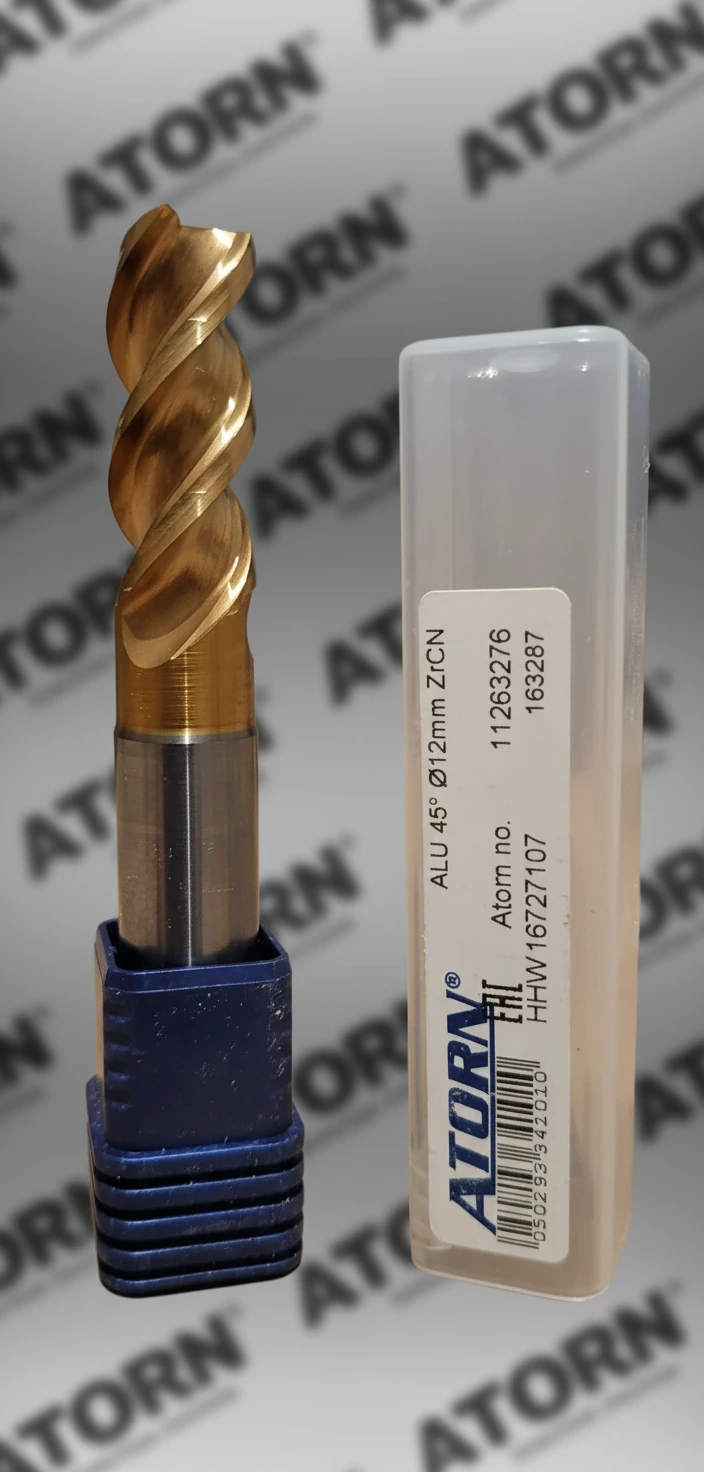 فرز انگشتی آلومینیوم ATORN قطر 12 میلیمتر با زاویه مارپیچ 45 درجه و پوشش ZrCN، یک ابزار برش حرفهای برای ماشینکاری دقیق آلومینیوم و آلیاژهای آن در دستگاههای CNC است.