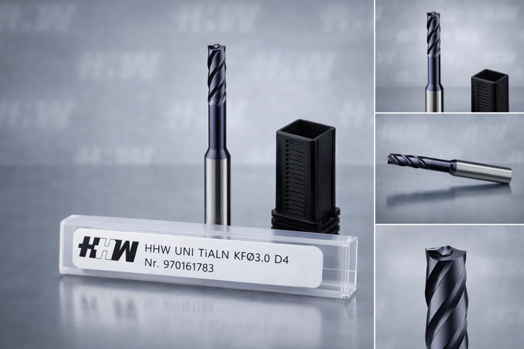مته فرز کارباید HHW UNI TiAlN قطر ۳ میلیمتر چهار پره (D4) یکی از ابزارهای دقیق و حرفهای برای فرزکاری و شیارزنی فلزات سخت و آلیاژی است. این ابزار از کارباید یکپارچه (VHM) ساخته شده و با بهرهگیری از پوشش TiAlN مقاومت بسیار بالایی در برابر سایش، حرارت و لبپریدگی در سرعتهای بالا دارد.
