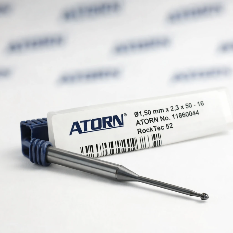 فرز انگشتی بالنوز کارباید ATORN RockTec 52 قطر ۱.۵ میلیمتر یکی از ابزارهای فوقدقیق ATORN آلمان برای ماشینکاری ظریف و سهبعدی است. این ابزار از کارباید یکپارچه (VHM / Solid Carbide) ساخته شده و بهدلیل هندسه بالنوز (نوک گرد)، گزینهای ایدهآل برای پرداخت نهایی، پروفایلکاری و ماشینکاری سطوح سهبعدی در صنایع قالبسازی و قطعهسازی دقیق محسوب میشود.